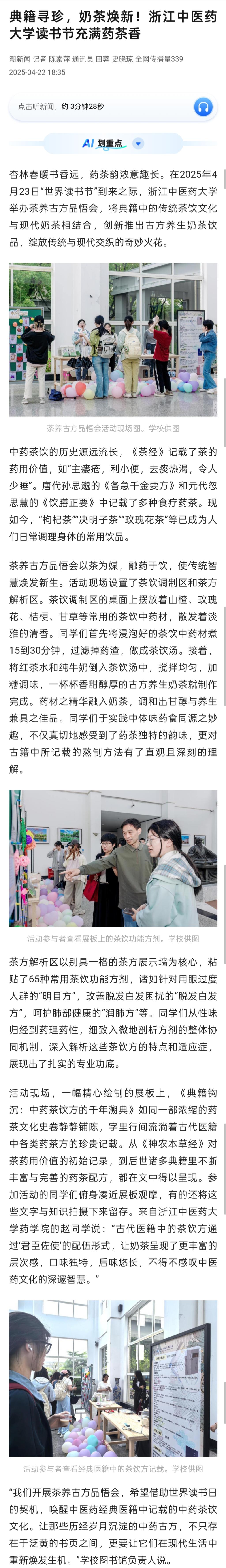潮新闻:典籍寻珍,奶茶焕新!久久精品一区二区三区四区读书节充满药茶香